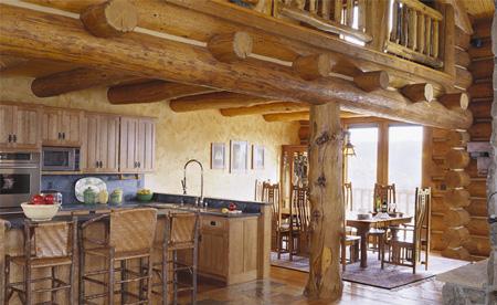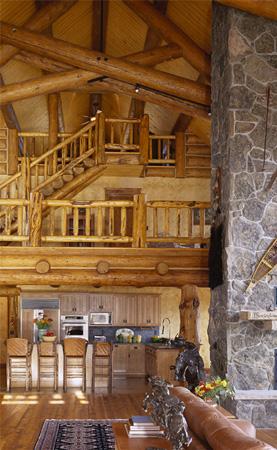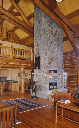 The lodge completed in September 2001 features log construction, which is 14 inches diameter, and three large stone fireplaces, blaze slate floors, spectacular views, and 32-foot high ceilings with huge exposed scissor trusses. A large living area with a fireplace and 61-inch television is available for your relaxation. A hot tub on an outside deck, sauna and well equipped exercise room are also available. We offer high speed internet access though we recommend that guests us it only for pleasure.