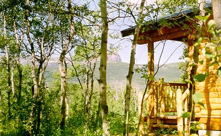 Each cabin provides a modern bathroom with shower, one or two queen size beds, picture window sitting area, and front sitting deck over looking an aspen grove with mountain views. A short creekside and upper meadow walk will reward you with one of the most panoramic views of Glacier National Park and the St. Mary Valley.
