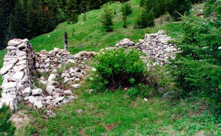 Today there is no one living in the camp. The shell of the Miners' Union Hall still stands. The roof supports have caved to the bottom floor, the third-floor dance hall, second-floor union offices, and ground-floor saloon/cafe are about to collapse together. The company hospital still stands.