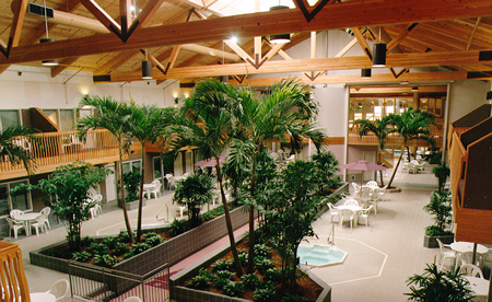 C'mon Inn offers in-room coffee makers, iron and ironing boards, microwaves, refrigerators and hair dryers in all rooms. All of our suites have king-sized beds and we also offer single rooms with king-sized beds. Each suite offers a personal jacuzzi, microwave, refrigerator and family area for added comfort. All our guests are invited to use the large swimming pool, children's pool or relax in one of the five hot tubs located in the spacious tropical courtyard. We serve a complimentary continental breakfast each morning and children 12 and under stay free. Smoking or non-smoking preferences can be accommodated on either floor. For fun and fitness, try a work out in our exercise room or challenge a friend to a game of ping pong.