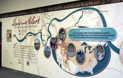 The Rocky Mountain Elk Foundation Wildlife Visitor Center features an impressive display of world record elk, life-size mounts of many other North American animals, and educational displays about elk and other wildlife. The Visitor Center also features a beautiful wildlife art gallery and a gift shop with many hand crafted and Montana-made creations. Don't miss the Lewis and Clark exhibit chronicling the explorer's dependence on elk and other wildlife. The public is welcome and admission is free. Open year round.