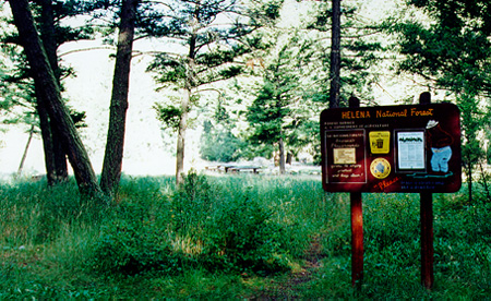 Vigilante Campground is located in Helena National Forest in central Montana. At an elevation of 4500 feet, the campground encompasses 7 acres. The campsites are in a timbered area on Trout creek. Hiking may be enjoyed on a marked trail nearby. Restrooms and water are available, and pets are welcome at Vigilante Campground. The maximum recommended trailer length for the area is 16 feet. Please limit your stay to 14 days. Small fee required.