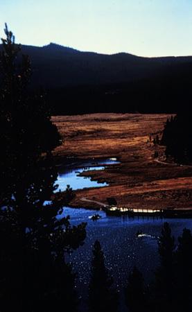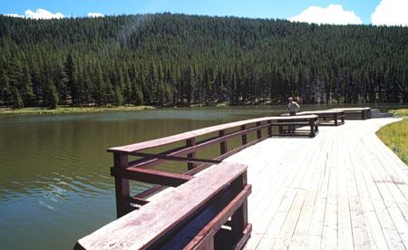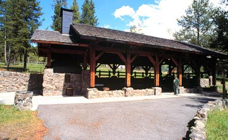 Sheepshead Recreation Area is an expanse of grassy meadows and sagebrush, with several streams and a small lake all surrounded by lodgepole pine forest. The receation area includes pavilions, picnic tables, barbecue grills, horseshoes, a fishing pier, nature trail, a volleyball court, ball fields, and paved trails.