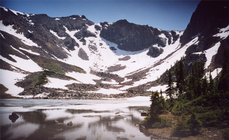 The Lost Cabin Lake Trail (150) begins at the west end of Bismark Reservoir and terminates at Lost Cabin Lake. The trail is five miles in length, is well maintained and is on an easy grade. A few sections are steep but they can be traveled by young persons or older individuals who are in good physical condition. The peaks surrounding the lake reach elevations above 10,000 feet. Mountain goats can often be seen on the cliffs to the south and east of the Lake. The trail travels through old growth lodgepole pine and spruce forests. The elevation at Bismark Reservoir is about 7,600 feet and the elevation at Lost Cabin Lake is 9,000 feet. The trail is open for hiking from July 1 to the middle of October. Snow drifts on the trail may be abundant during years of late thaws.