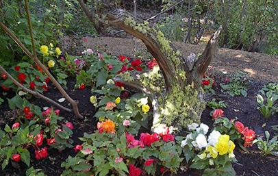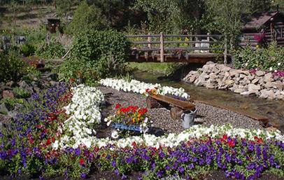 Take a self guided tour or let us take you down Our gardens paths to explore thousands of high altitude plants. which include annuals, roses, wild flowers, herbs, vegetables, perennial and bulbs, in some of the most amazing settings. The kids love our fairy and gnome gardens, where Upside Down Trees smile down and protect all their little friends. Try hiding out in the secret garden, journalizing your thoughts while being tranquilized by the crystal clear creek, the Buddha garden is the perfect place to sit and mediate. You are welcome to bring your lunch and sit at any of our numerous tables in the theme gardens, whether it be the Weeks Rose Gardens, the herb patch, the Patriotic garden or maybe the Shade or Perennial gardens. Visit the restored Gold Miner's cabin or the 'Hotel' which was strategical placed on a tiny little island in the middle of the creek.