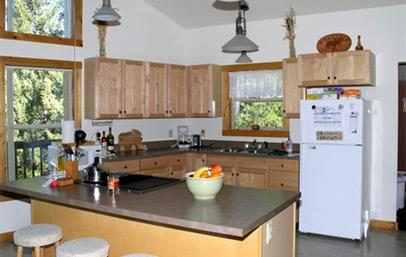 The complete kitchen has an electric range and oven, microwave, fridge, coffee maker and grinder - all the necessities! There is plenty of cookware, serving ware and even a spice cabinet. All you need to bring are your groceries. The dining table will seat eight comfortably, and ten if you really want to get cozy. There is additional seating with three barstools at the kitchen counter, plus outdoor seating on the deck.