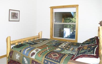 There are a total of three bedrooms in the home, plus a loft with extra sleeping space. The loft area is up over the living room, and has a pullout sofa bed. This is where you will find the only television and VCR for the home and library reading area with supply of books. On the main floor are two bedrooms with queen size beds. There is one full bath with tub and shower on this level. Finally, on the lower level of the home you will find the third bedroom, also with queen size bed. There is one more full bathroom on the lower level of the home.